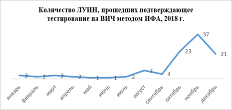 Количество ЛУИН, прошедших подтверждающее тестирование на ВИЧ методом ИФА |